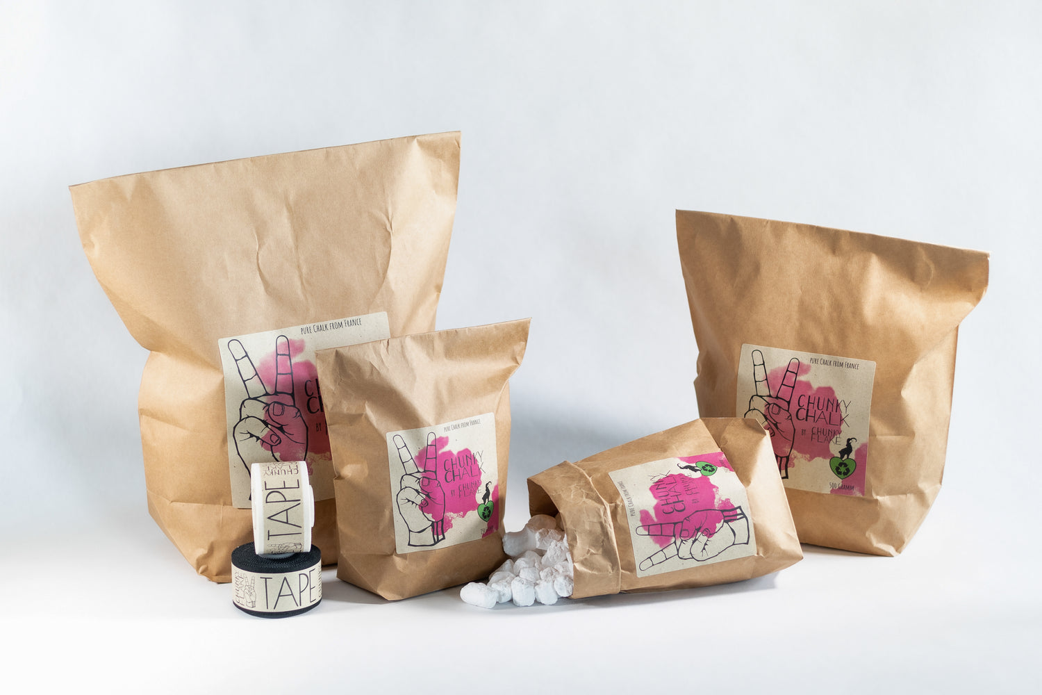 Bei unserem Equipment achten wir auf Qualität, sowie auf Nachhaltigkeit. Unser Chalk kommt aus Frankreich, unsere Taschen sind aus recyceltem Material und unsere Mützen sind aus Bio-Baumwolle.