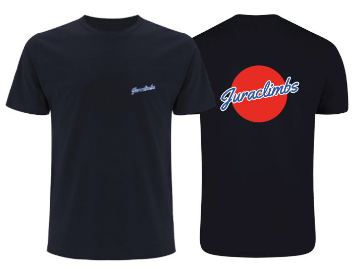 Nachhaltig, fair und mit dem Juraclimbs Logo besticht das Shirt in einem tiefen Blau