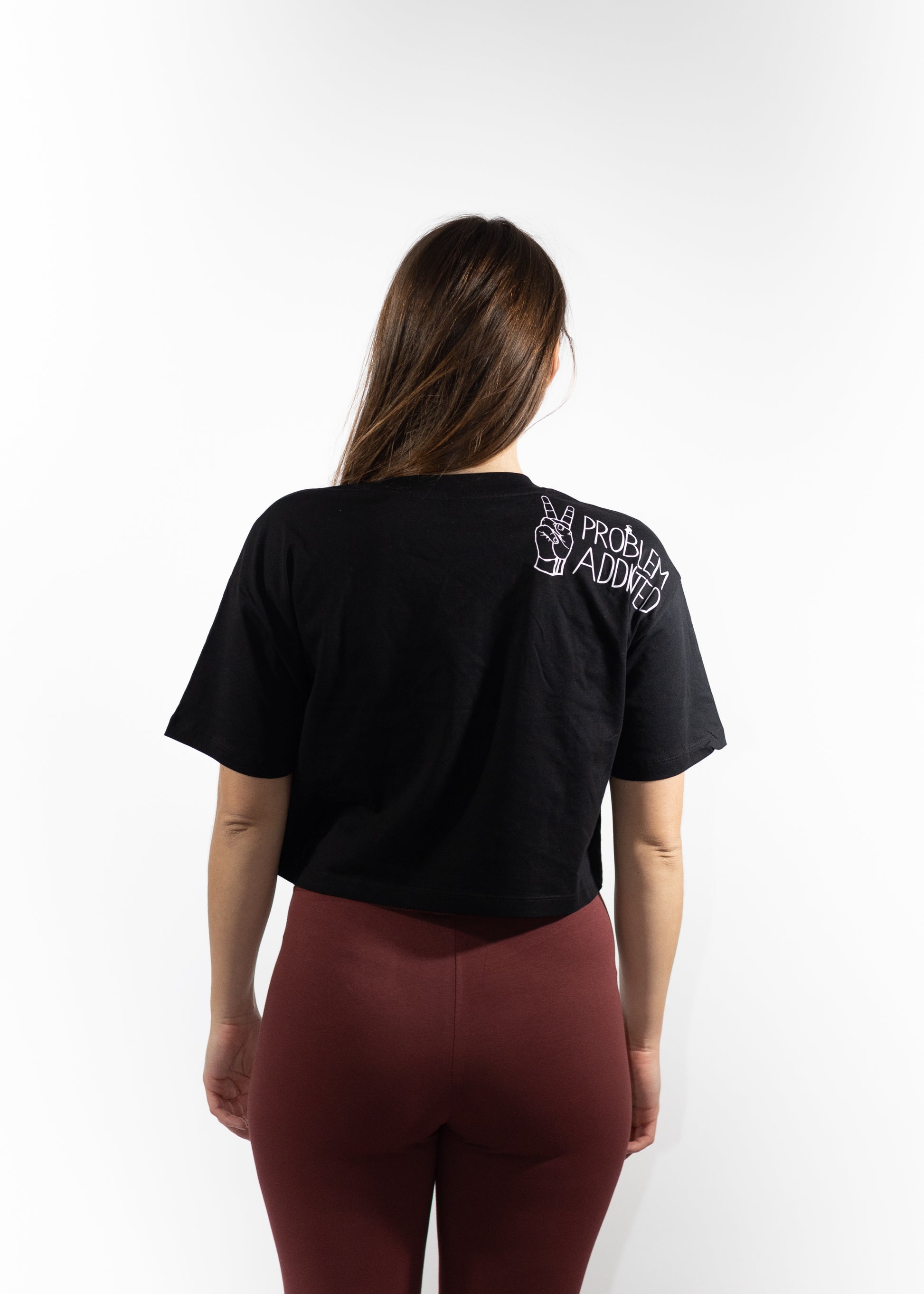 Mittlerweile ein echtes Muss im Kleiderschrank, unser cropped Shirt. Perfekt in Kombination mit einer Leggings oder ganz im 90er Style mit einer weiten Boulderhose. Auf der Front findet ihr einen Logodruck und auf der Rückseite unseren "Problem Addicted" Druck.
